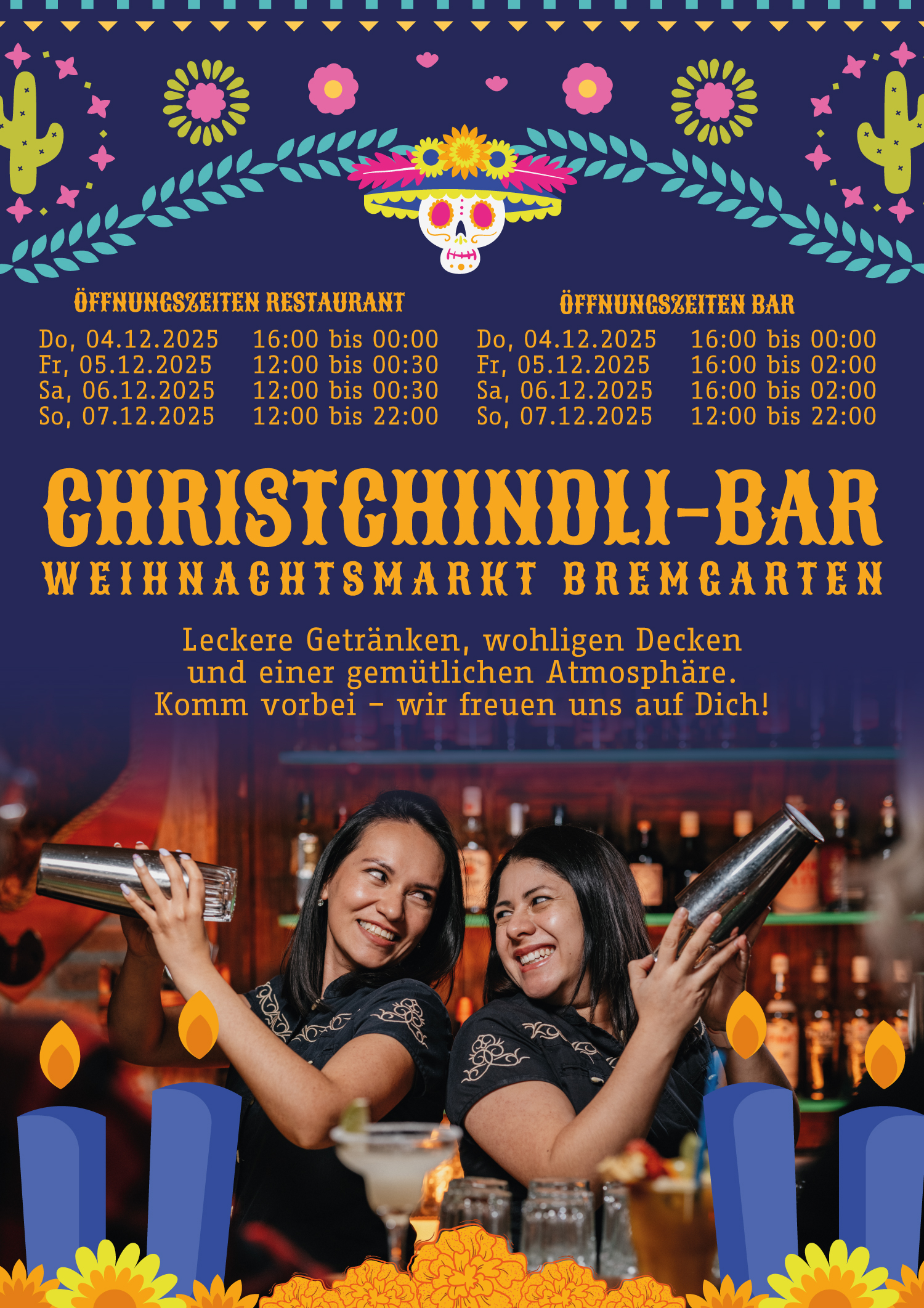 Das El Mosquito ist der sonnigste Ort in Bremgarten. Wir empfangen dich im echten Ambiente einer mexikanischen Bodega. Bei uns tanzen nicht nur der Charro und die Escaramuza zur Musik der Mariachi. Beliebte Hauptspeisen aus unserer Küche sind Fajitas, Burritos und Nachos. Unsere Daiquiris und Margaritas sind weitum berühmt! Wir verwenden authentische Produkte und frische Zutaten. Aus dem Saft der Herzen von blauen Agaven wird unser Tequila hergestellt. Den Daiquiri mixen wir mit bestem Rum. Viele Sorten mexikanischer Biere findest du auf unserer Karte. Unser El Mosquito Hauswein ist schwer, aber unkompliziert. Wir freuen uns auf deinen Besuch mit Freunden in unserer Bodega & Bar und im Sommer auch auf unserer Terrasse.